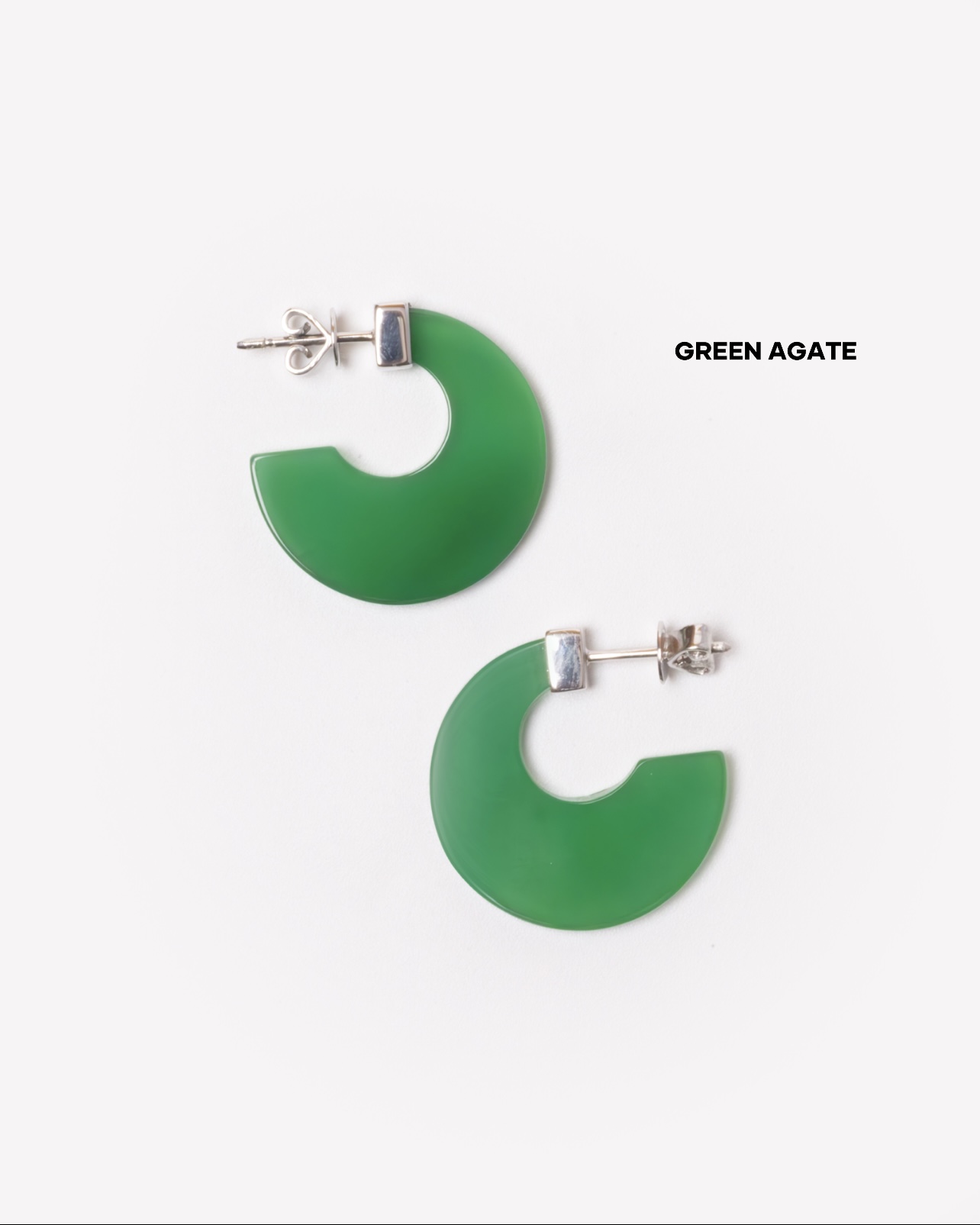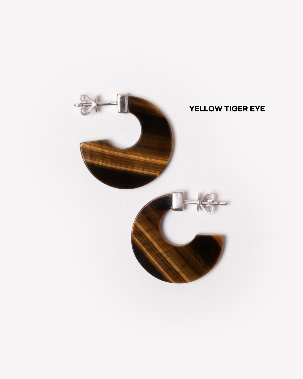 A modern ode to the moon’s many faces, the Luna Earrings feature a bold crescent silhouette carved from natural gemstones—each pair as unique as lunar light.