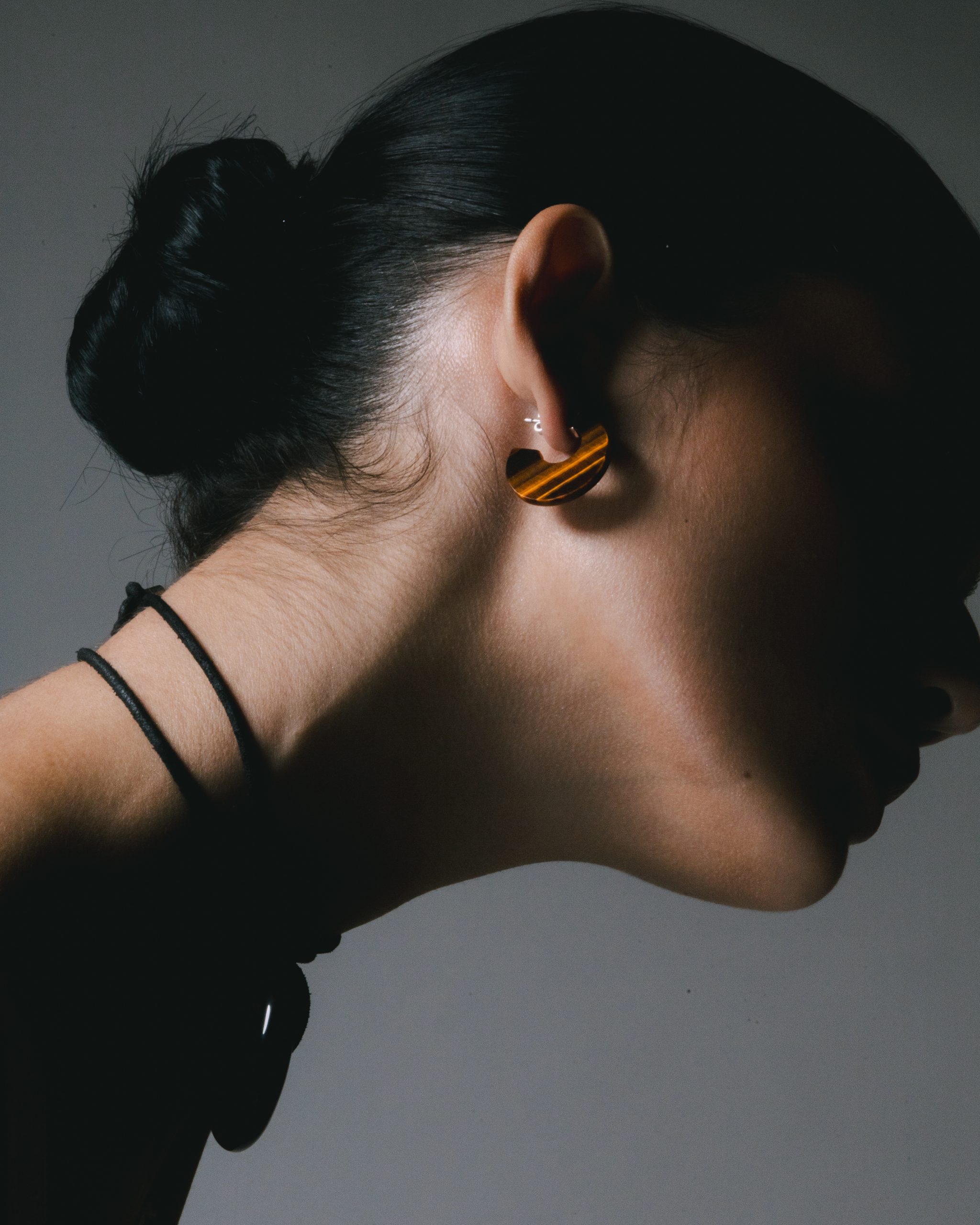 These earrings are a study in shape, shine, and quiet power—designed to ground, reflect, and glow with you.